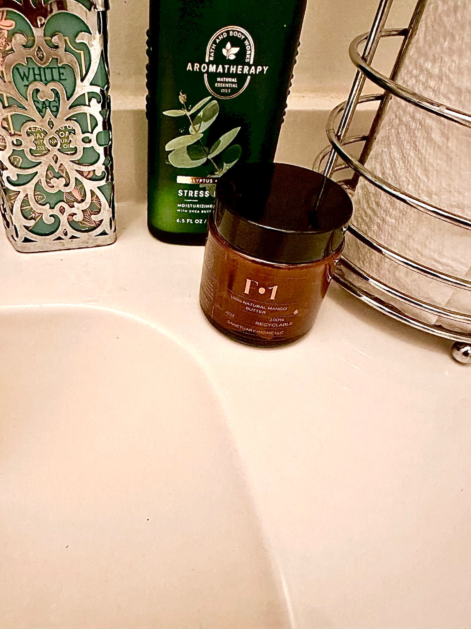 F • 1 is our first formula. Our Non-comedogenic skincare, formulated to minimize the risk of pour blockage, which can lead to blackheads, white heads and acne. Smooth and nourishing mango butter enriched with vitamin E, manuka honey, hemp oil and whipped to a confectionary consistency. This butter melts at body 78.8 degrees fahrenheit for easy application and is best used on damp skin.